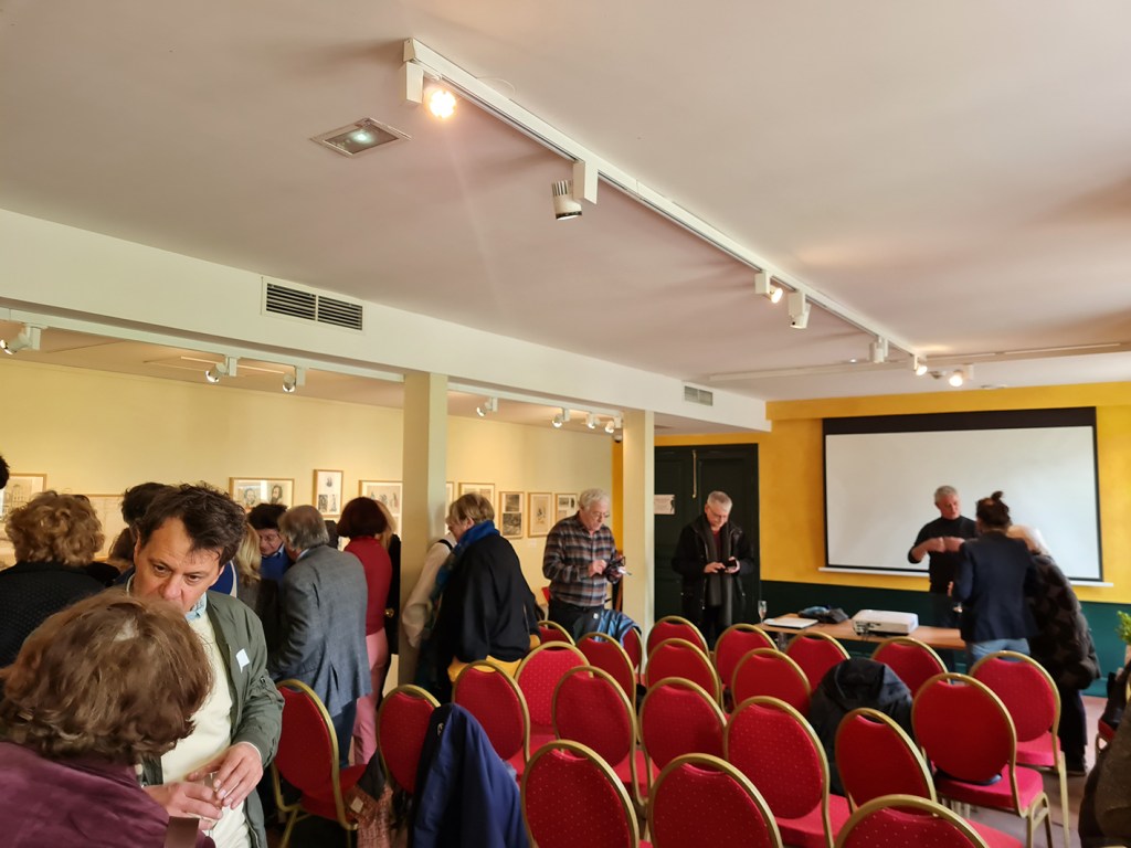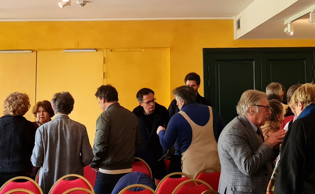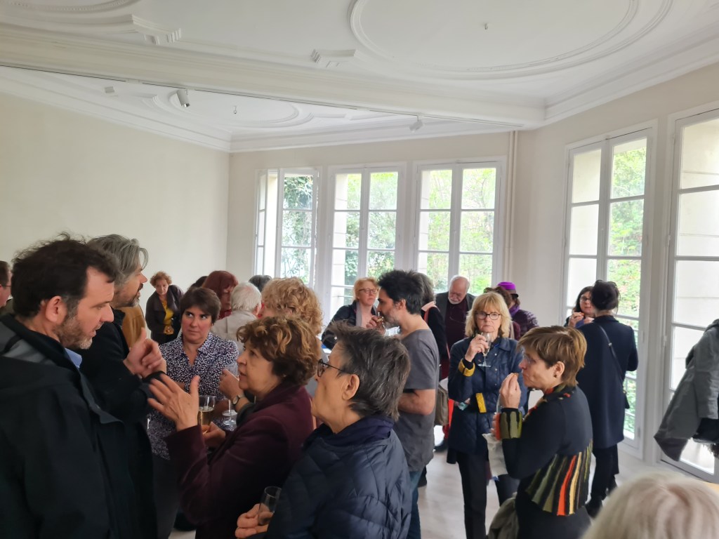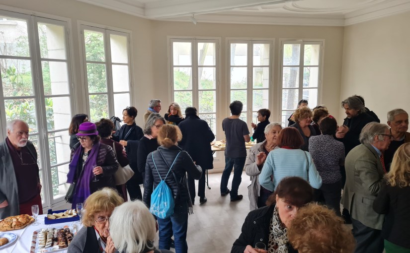 Après la conférence a eu lieu le traditionnel buffet au champagne, qui a permis échanges et discussions très animés, dans la salle du premier étage de la Villa Radet, ouverte sur les beaux jardins de la Cité des Arts où les arbres commençaient à verdir, sous un grand soleil de printemps.